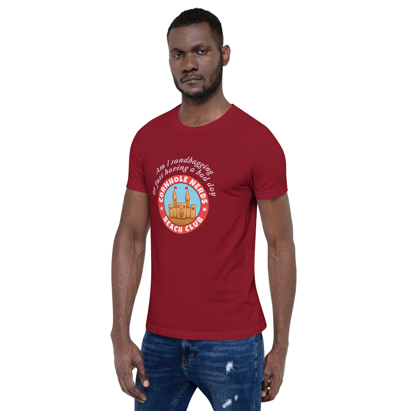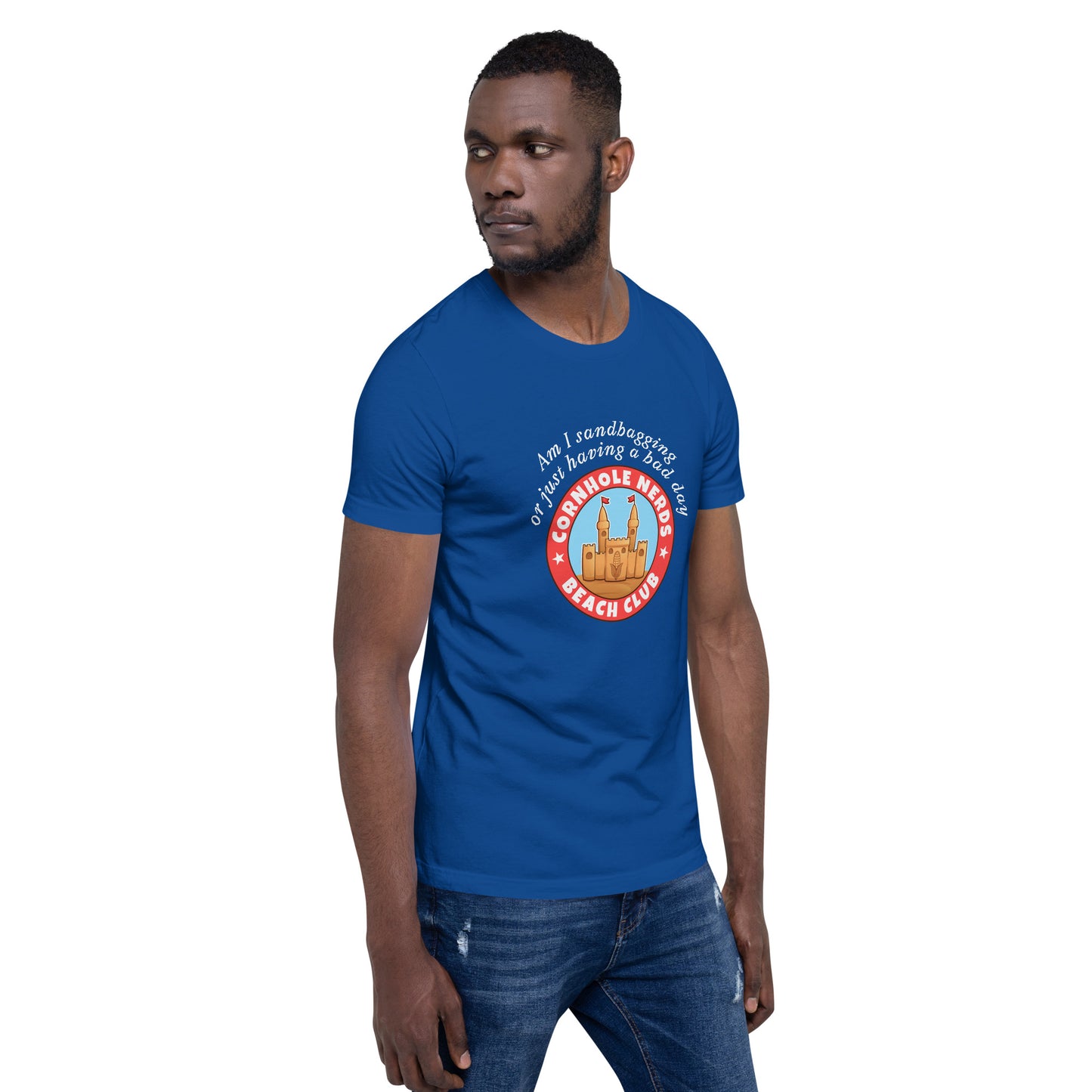 Am I sandbagging or having a bad day Cornhole Nerds Beach Club Unisex t-shirt