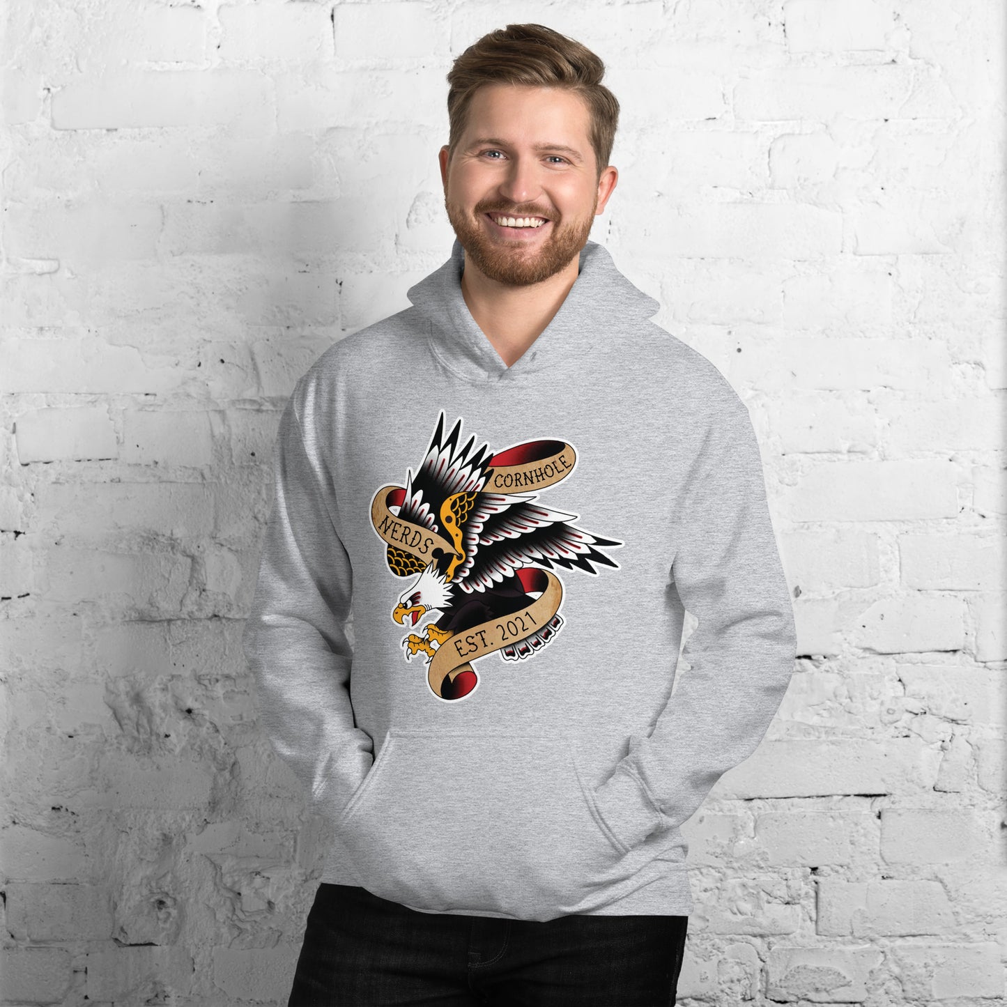 Cornhole Nerds eagle est 2021 logo Unisex Hoodie