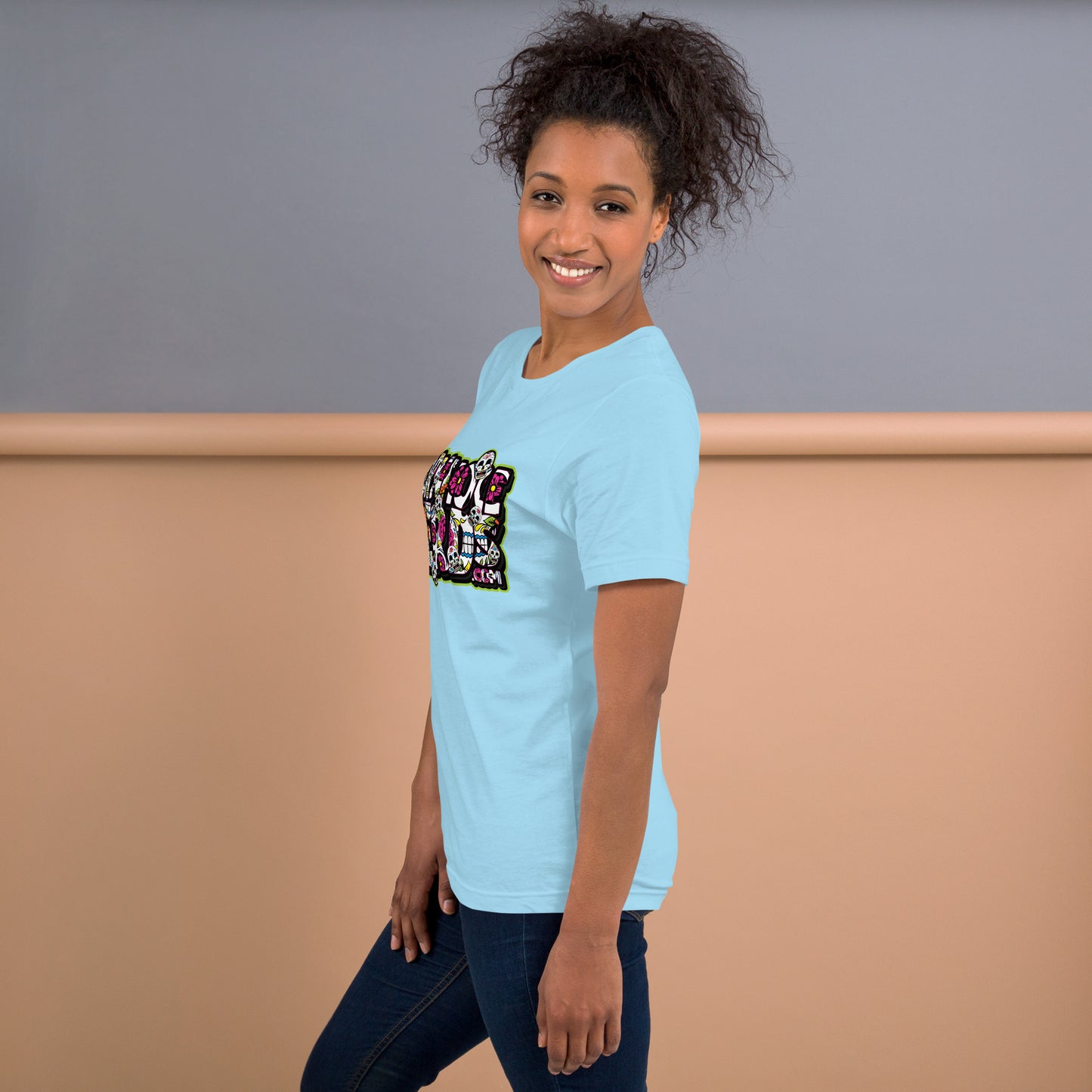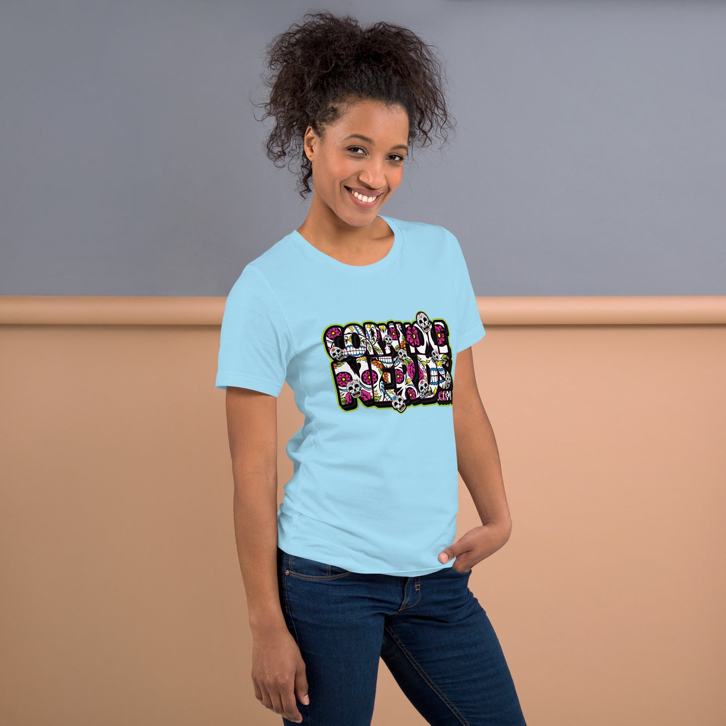 Cornhole Nerds Sugar Skulls logo Unisex t-shirt